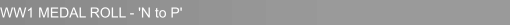 NAME RANK NUMBER UNIT 1914 1415 WAR VICT NOTES N Nash, D Pte 18305 Northamptons WAR VICT Neal, A H Pte 54037 South Staffordshires WAR VICT Neville, H Pte 200976 4th Northamptons WAR VICT Norris, F LCpl 22246 7th Northamptons WAR VICT Norris, G W Pte 64113 15th Kings Own, Yorkshire Light Inf WAR VICT Norris, J A Pte 43673 5th Northamptons WAR VICT Northrop, G S Tpr 3711 2nd Lifeguards WAR VICT Nunley, Hry B Pte 467877 Labour Corps WAR VICT Nunley, Herbert Pte 50150 Suffolks WAR VICT MM Nunley, Horace Pte 203112 6th Northamptons WAR VICT Nunley, L B Pte 200689 1st/4th Northamptons WAR VICT Nunley, S F Pte 640 Exped Force Canteen, ASC 1415 WAR VICT Nunley, Walter Pte 16089 2nd Northamptons 1415 WAR VICT Nunley, William ALCpl 201039 4th Northamptons 1415 WAR VICT Nurrish, E Pte 89387 55th Coy, Machine Gun Co WAR VICT O Orton, F M Pte 205336 Northamptons 1415 WAR VICT Orton, G M Pte 7145 2nd East Surreys 1415 WAR VICT P Parker, E Pte 7207 2nd Gloucesters 1914 WAR VICT CLASP Parker, F Pte 90374 32nd Coy, Machine Gun Co WAR VICT Parker, G W Pte 66381 Machine Gun Corps WAR VICT Partrick, F T Pte 17726 Northamptons 1415 WAR VICT Payne, H Pte 35471 Yorks & Lancs WAR VICT Payne, W Pte 26635 7th East Kents WAR VICT Peacock, C Sgt 16842 8th Bedfords 1415 WAR VICT Peacock, G Pte 42816 Beds & Herts WAR VICT Pell, H Sgt SD/338 Royal Sussex WAR VICT MM Pentelow, E F Gnr 147464 229th Siege Batt, R G A WAR VICT Pentelow, Felix Pte 47686 Welsh Regiment WAR VICT Pentelow, Frank Pte 13/2886 2nd Aucklands, NZ Exped Force WAR VICT Pentelow, G W Pte 202839 1st Norfolks WAR VICT Pentelow, H Gnr 63796 Royal Garrison Artillery WAR VICT Pentelow, Jack - 1 Pte 32154 8th East Surreys WAR VICT Pentelow, Jack - 2 Gnr 95973 Royal Field Artillery 1415 WAR VICT Pentelow, John T LCpl 48263 Royal Army Medical Corps 1415 WAR VICT Pentelow, Ralph Pte 42471 12th Suffolks WAR VICT Percival, S A Pte 28550 Duke of Cornwalls Light Infantry 1415 WAR VICT Pettit, A B Pte 115220 Machine Gun Corps WAR VICT Pettit, F Pte 205448 5th Norfolks WAR VICT Pettitt, G Pte 30904 6th Northamptons WAR VICT Pettitt, W LCpl 783434 29th Londons WAR VICT MM Phillips, A J LCpl 40755 2nd Inniskillings WAR VICT Plant, J J W Sgt 200965 1st/4th Northamptons MM Price, H Gnr 102138 Royal Garrison Artillery WAR VICT Putt, W Pte 89390 Machine Gun Corps WAR VICT