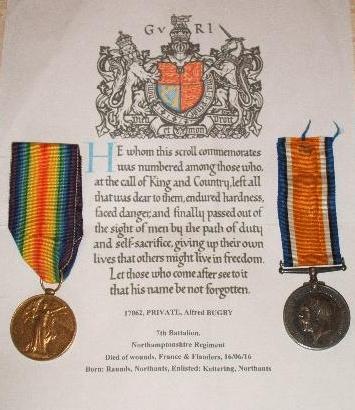 During our research we've located various medals awarded to, and death plaques dedicated to, Raunds men during the Great War.