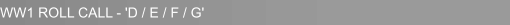 | NAME | RANK | NUMBER | UNIT | | | D | | | | | | Dams, Wilfred | Private | 38542 | 9th Essex | | | Darlow, George William | Private | 816 | 8th Australian Light Horse | | | Davis, Walter | 2nd Private | 192253 | Royal Air Force | | | Dickerson, Frederick J | Private | PS11318 | 28th Royal Fusiliers | | | Dickerson, Stanley | | 71392 | Royal Fusiliers | | | Dicks, William | Private | | 3rd Northamptons | | | Dicks, William | | 22594 | Essex | | | Dix, Charles Edward | | 94036 | Middlesex | | | Dix, Frederick Walter | Private | 38610 | Royal West Kents | | | formerly | | | Motor Transport, A S C | | | Dix, John | Private | 7272 | 1st Northamptons | | | Drage, John | Private | 200239 | Northamptons | | | Drage, Joseph Frederick | Private | 11161 | Northamptons | | | Draper, Samuel | Sergeant | | 7th Northamptons | | | Draper, Samuel | Sergeant | 21981 | 1st Norfolks | | | Draper, Walter | Lance/Bdr | 17202 | Royal Garrison Artillery | | | Driver, Ralph | Private | 242091 | 7th Royal West Kents | | | Dunmore, Harry | Sergeant | 200212 | 4th Northamptons | | | Dunmore, Joseph H | Sergeant | 3/10549 | 6th Northamptons | | | E | | | | | | Eady, Levi | Corporal | 15515 | Royal Field Artillery | | | Eady, Robert Amos | 2nd Air Mech | 43528 | Royal Air Force | | | East, Herbert William | Private | 646 | Northants Yeomanry | | | Eaton, Ernest Eli | Private | 39294 | 2nd/1st Sussex Yeomanry | | | Edge, Thomas | Lance Corp | 2770 | 4th Devon & Cornwall | | | Edwards, Hubert Arch. | Private | 202038 | 4th Reserve Essex | | | Edwards, James William | Private | 200747 | 4th Northamptons | | | Ekins, Leonard Herbert | Gunner | 198493 | Royal Garrison Artillery | | | Ellingham, Edgar | Private | 23106 | Royal Army Medical Corps | | | Elliot, John William | Private | 40733 | 2nd Royal Inniskillings | | | formerly | | 30941 | Northamptons | | | Elliott, Ernest John | Private | 17543 | 3rd Northamptons | | | Elliott, Thomas Fred. | Private | 235005 | Suffolks | | | formerly | Private | 204777 | 4th Northamptons | | | Elliott, Raymond Walter | A/Lance Corp | 131753 | Army Service Corps | | | Essam, Leonard | Private | 60678 | Bedford & Hertfords | | | formerly | Private | 204778 | Northamptons | | | formerly | Private | 235006 | Suffolks | | | Evans, Thomas Rees | Private | 37667 | Army Service Corps | | | formerly | Private | 24871 | 9th Royal Sussex | | | F | | | | | | Fairy, Arthur Llewellyn | Private | 202843 | 1st Norfolks | | | Fairy, Harry Dickens F | Private | 14938 | 1st Queens (R W Surreys) | | | Farr, David | Private | 201520 | Cambridges | | | formerly | Private | 4515 | Suffolks | | | Farr, Percy Thomas | Private | R/452130 | 456th Labour Corps | | | formerly | | 50272 | Suffolks | | | Farrar, Reginald | Private | | Coldstreams | | | Farrar, William | Private | | | | | Farrer, Albert Reginald | Private | 1467 | Machine Gun Corps | | | Farrer, William Charles | Gunner | 890406 | Royal Field Artillery | | | formerly | Gunner | 1434 | Royal Field Artillery | | | Felce, Frederick | Private | 22727 | 2nd Northamptons | | | Felce, Harry Joseph | Private | 360069 | 807th Labour Corps | | | formerly | | 1719 | Northamptons | | | Felce, Wiiliam Wilfred C | Private | G/14431 | Depot, East Kents, Buffs | | | Ferrar, Francis Thomas | Lance Corp | 13732 | 6th Queens (R W Surreys) | | | Ferry, Frederick James | Private | 202515 | 4th Berkshires | | | formerly | Private | 1716 | 4th Northamptons | | | Ferry, Rennie Bramwell | Ord Seaman | R/6179 | 2nd Reserve, R N Division | | | Ferry, Richard Ambrose | Private | 20652 | Army Veterinary Corps | | | Field, Herbert Charles | Private | 42526 | 3rd Sth Wales Borderers | | | formerly | Private | 63780 | Welsh Regiment | | | Finding, Harry | Private | 29460 | 1st Bedfords | | | Finding, Horace | Private | 529153 | 682nd Agricultural Corps | | | formerly | | 25134 | Northamptons | | | Finding, William | Corporal | 19851 | Northamptons | | | Fitzhugh, Richard | Private | 200999 | 4th Northamptons | | | Flavell, Ernest John | Private | 426696 | 13th Quebecs, Canadians | | | Flavell, George Benj. | Private | 426695 | 13th Quebecs, Canadians | | | Fox, Arthur Owen | Private | 90252 | 128th Coy, Machine G C | | | Frankham, Robert Art. | Trooper | 145905 | 1st Northants Yeomanry | | | Freeman, Jack Roland | Private | 713853 | Queens (R West Surreys) | | | G | | | | | | Garner, Frederick James | Private | 7127 | 2nd East Surreys | | | Gates, Ernest | Private | 154152 | Labour Corps | | | formerly | Private | 17451 | 3rd Northamptons | | | Gates, Frederick | Sergeant | 16972 | 6th Northamptons | | | Gates, Walter C | Private | 15817 | 6th Northamptons | | | Gaunt, Ernest | | | Royal Air Force | | | George, Stanley Oswyn | L/Sergeant | 33540 | 7th Bedfords | | | formerly | Private | 22688 | Northamptons | | | Gilbert, Jasper Sydney | Private | 202982 | 2nd Northamptons | | | Gilbert, Walter | Private | 35314 | East Surreys | | | Gillett, William Arthur | Sapper | W271134 | 12th LROC, Royal Eng | | | Goodman, Harold John. | Corporal | PO1469S | 1st Res, RM Light Infantry | | | Gordon, John William | Private | 38541 | 10th Essex | | | formerly | | | 3rd Essex | | | Gordon, Thomas William | Private | 16045 | 1st Northamptons | | | Gordon, W | Drummer | | 1st Northamptons | | | Green, Bertie | Private | 04321 | Hampshires | | | formerly | | 205469 | 2nd Norfolks | | | Groom, Alfred | Private | 617412 | 2nd/19th Londons | | | formerly | Private | 34568 | 2nd Leicesters | | | Groom, Arthur Roland | Corporal | B200443 | 10th Rifle Brigade | | | formerly | Private | 29517 | 7th Bedfords | | | Groom, Frank Leslie | | 339067 | Bedfords | | | Groom, Lot | 2nd Private | 124341 | 31st BS, Royal Air Force | | | Groom, Percy | | 122682 | Sherwood Foresters | | | Groom, Richard | Private | 6534 | 1st Northamptons | | | Groom, Walter Cyril | Private | 273997 | Motor Transport, ASC | | | Groom, William | 3rd Air Mech | 63714 | 49th Btn Sec 5820, RAF | | | Groom, William Henry | Private | 44276