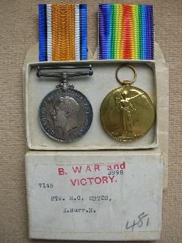George Mundin Orton's 1914/15 Star, War and Victory medals. (Courtesy of Margaret Hlavacek & Mollie Atkins)