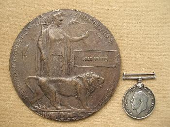 Richard "Dick" Cobley's War and Victory medals and death plaque. (Courtesy of Kevin Varty)